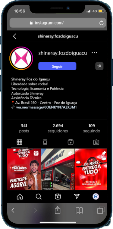 Por aqui, a paixão por motos não para! Siga nosso Instagram e venha sentir a energia da Shineray de Foz no seu feed.